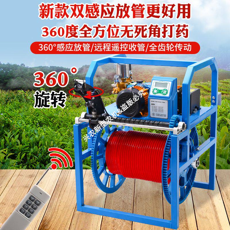 电动打药机高压农用新款360双感应放管48V60V72V遥控卷管喷雾器工