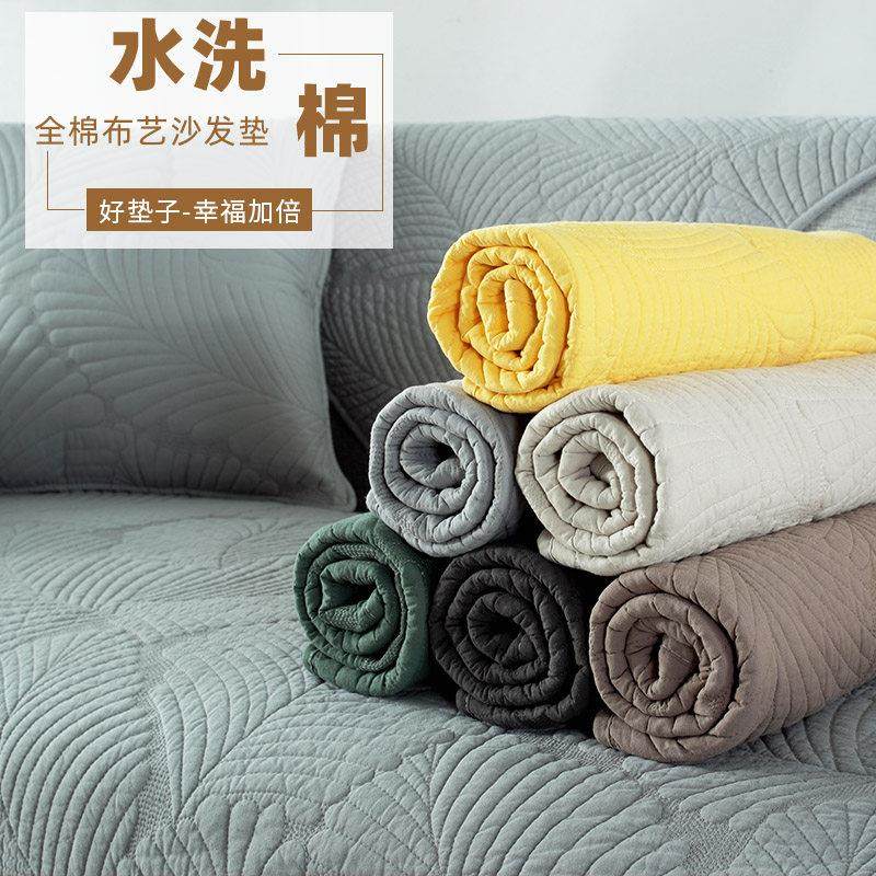 纯棉沙发垫四季北欧简约通用现代防滑坐垫布艺套罩巾实木纯色冬季