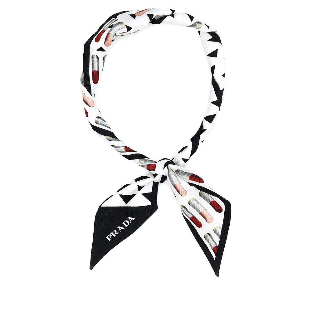 香港直邮PRADA 女士围巾 1FF0082C7FF0967 SS2025 黑色 印花围巾