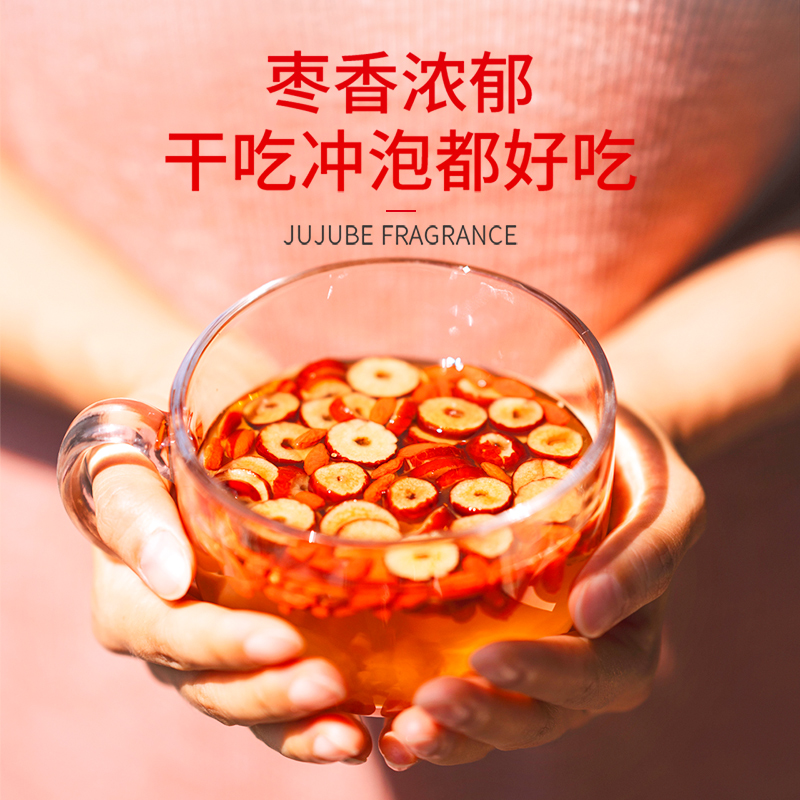 包邮艺福堂花草茶新疆特级红枣片无核干吃免洗罐装泡茶搭枸杞