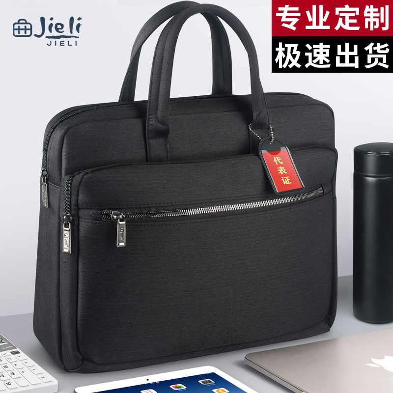 杰利商务男士公文包定制logo政府会议A4手提文件包档案袋牛津布