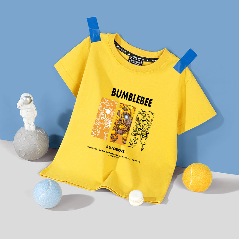 变形金刚男童短袖t恤潮流帅气中大童夏季纯棉衣服2025新款大黄蜂