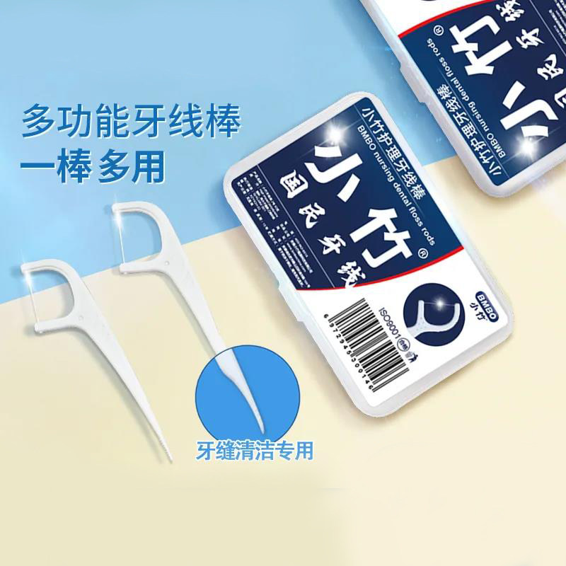 牙线棒超细家庭装独立包装扁线带收纳盒小竹一次性牙线棒随身盒