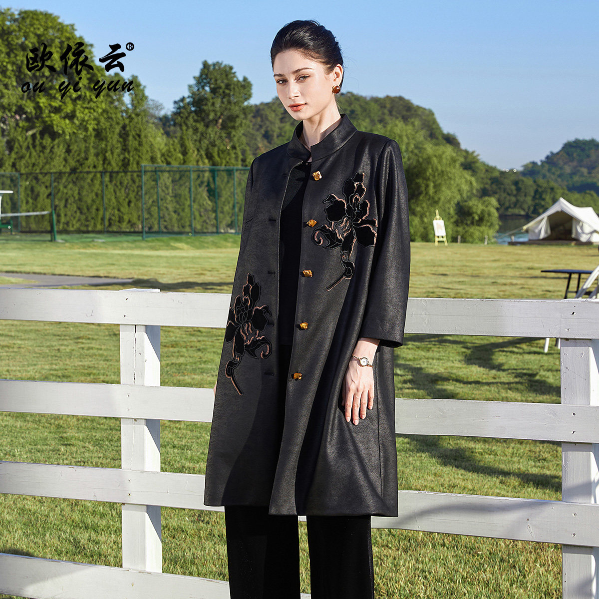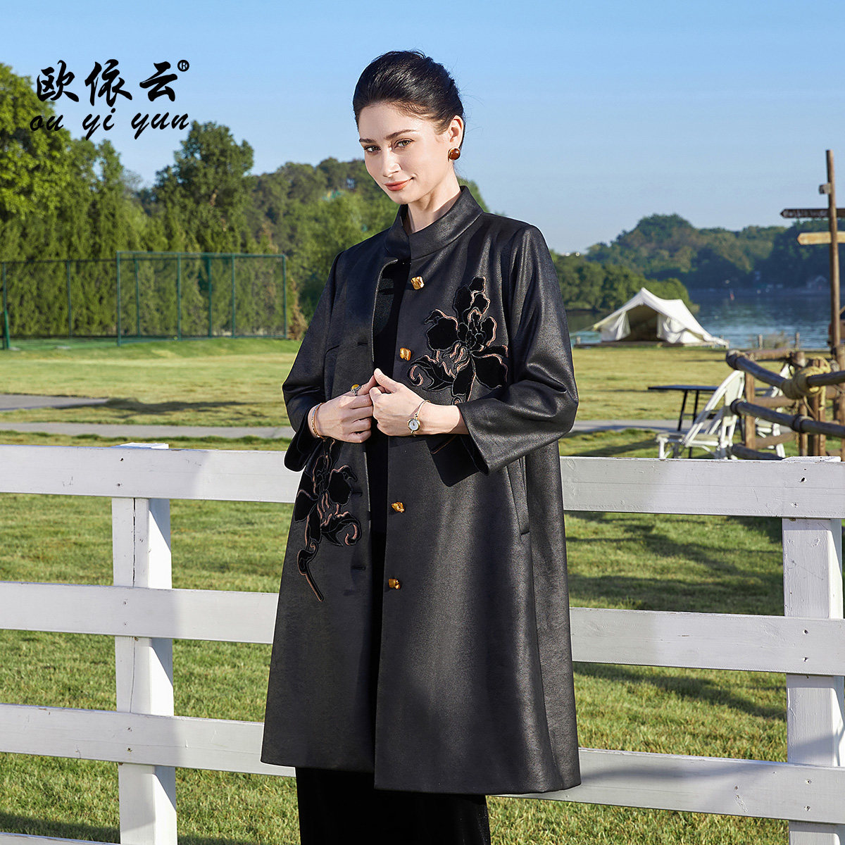 欧依云中老年妈妈春装外套中长款显瘦大码华丽洋气风衣女2026新款