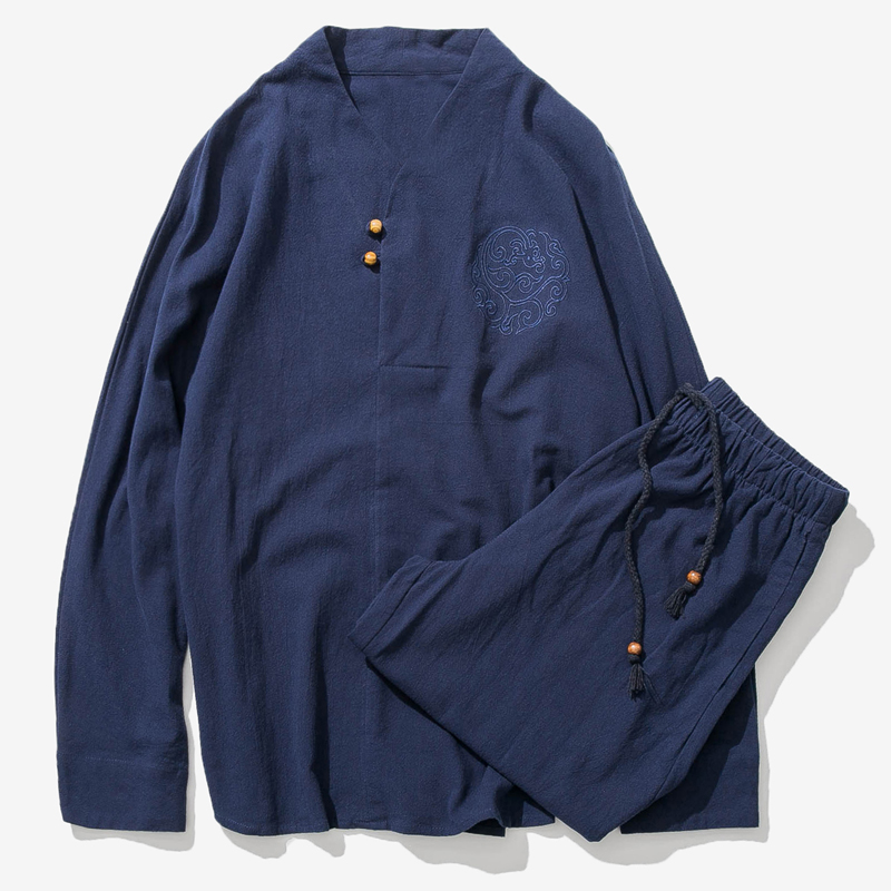 亚麻短袖t恤男青年春夏大码中国风汉服休闲男装棉麻套装居士禅服