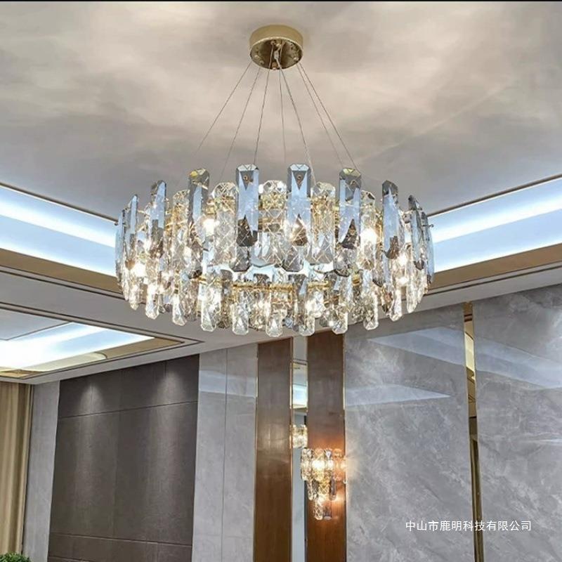 法式轻奢网格K9水晶吊灯意式简约酒店餐厅灯简约别墅卧室客厅灯饰