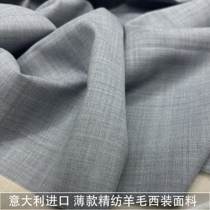 意大利进口薄款浅灰色精纺羊毛西装面料衬衫裤子外套布料春夏男女