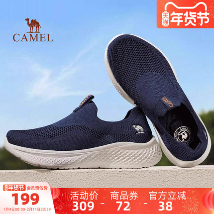 骆驼男鞋2025夏季新款轻便透气健步爸爸鞋一脚蹬网面运动休闲鞋男