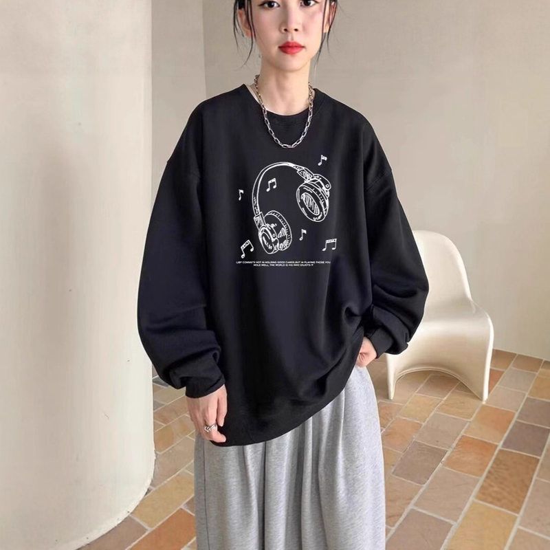 男款圆领新款重磅潮流休闲上衣卫衣套头加绒秋冬港风加厚宽松印花