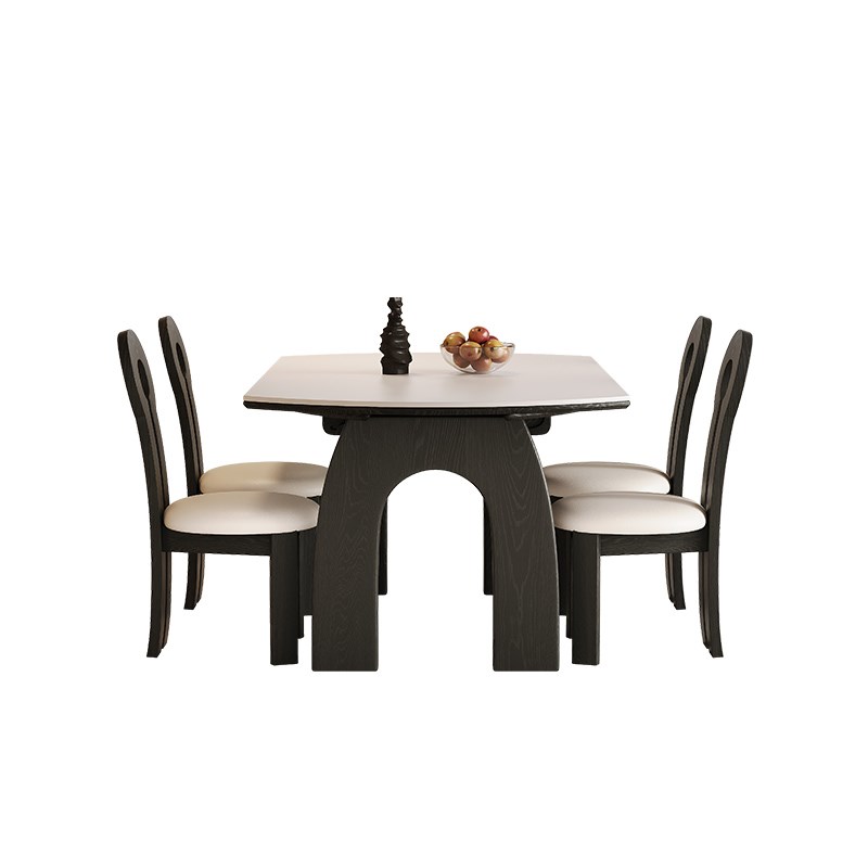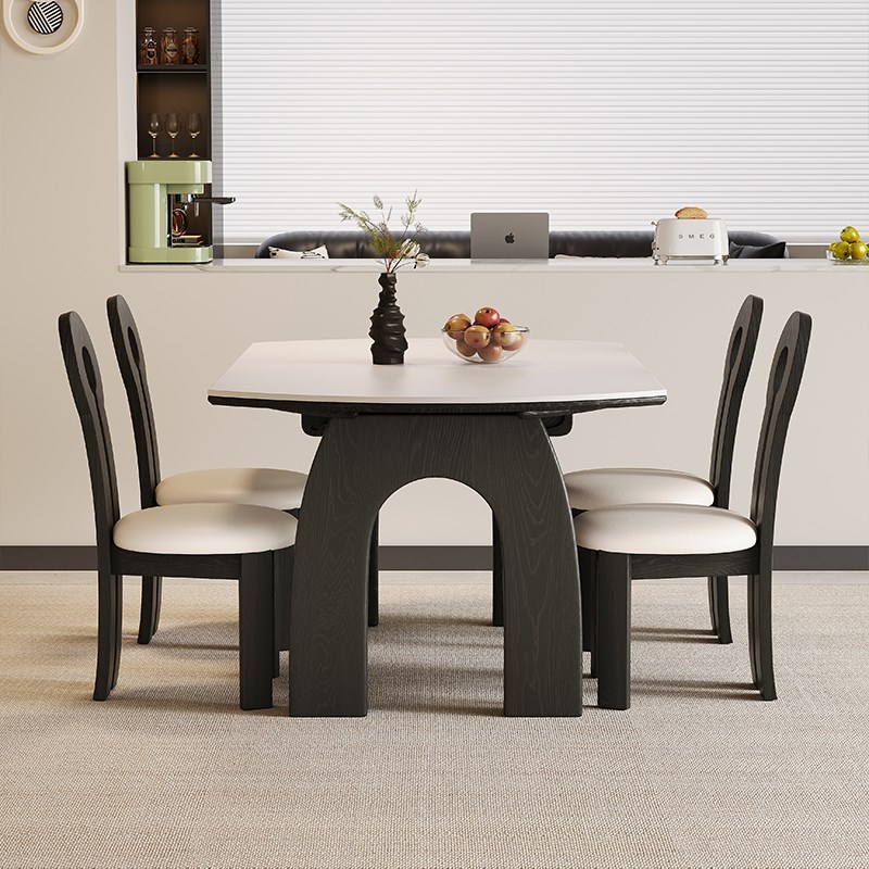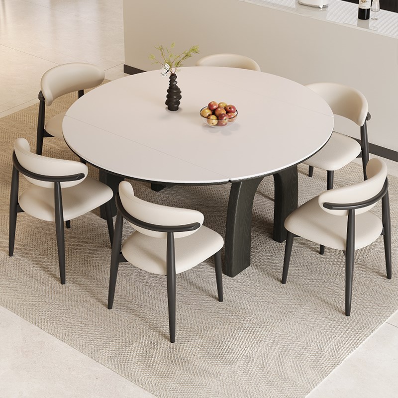 法式实木岩板餐桌可伸缩现代简约方圆两用家用小户型折叠可变圆桌