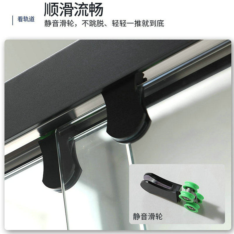 黑色不锈钢一字型淋浴房简易干湿分离钢化玻璃浴室门卫生间浴亭
