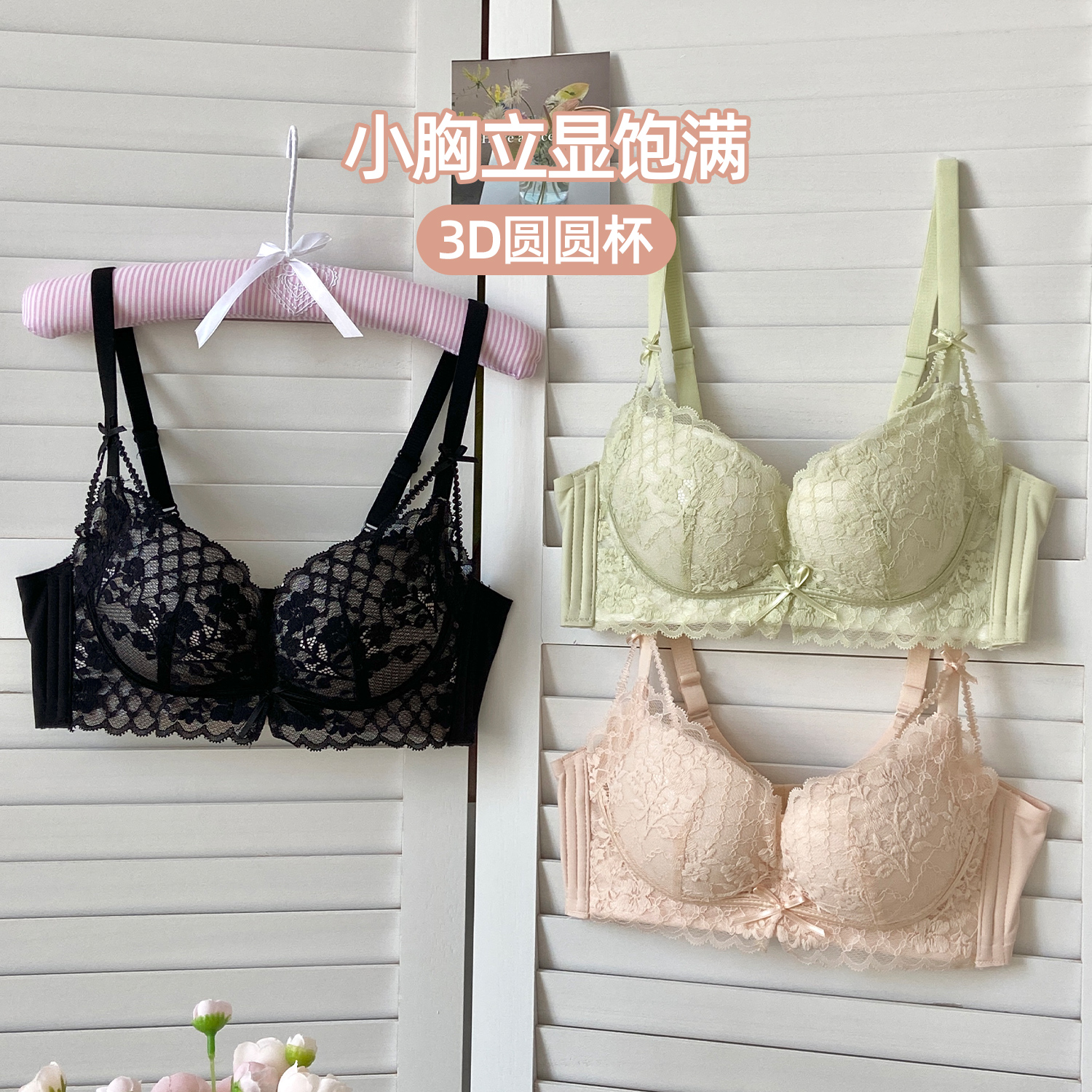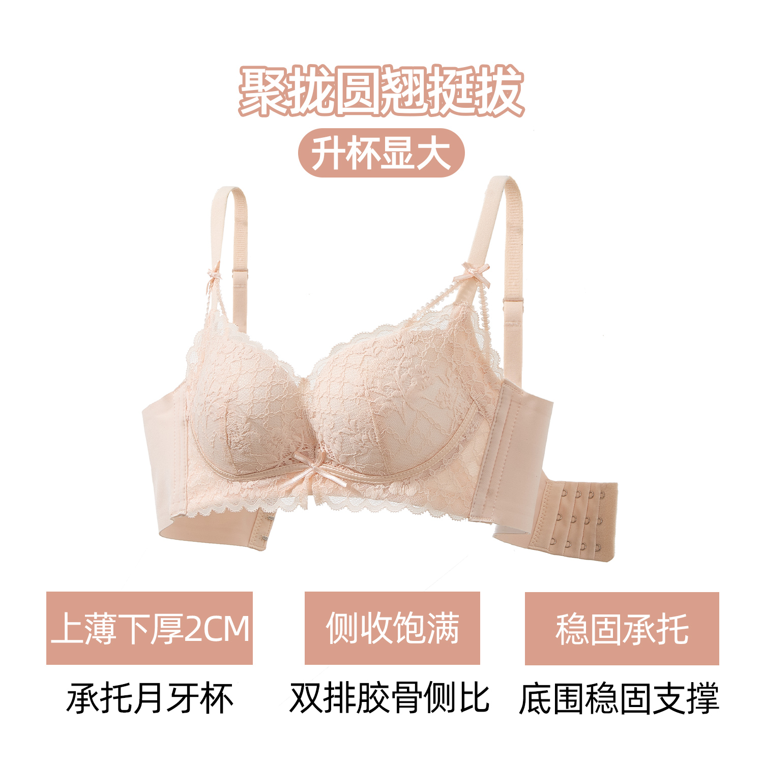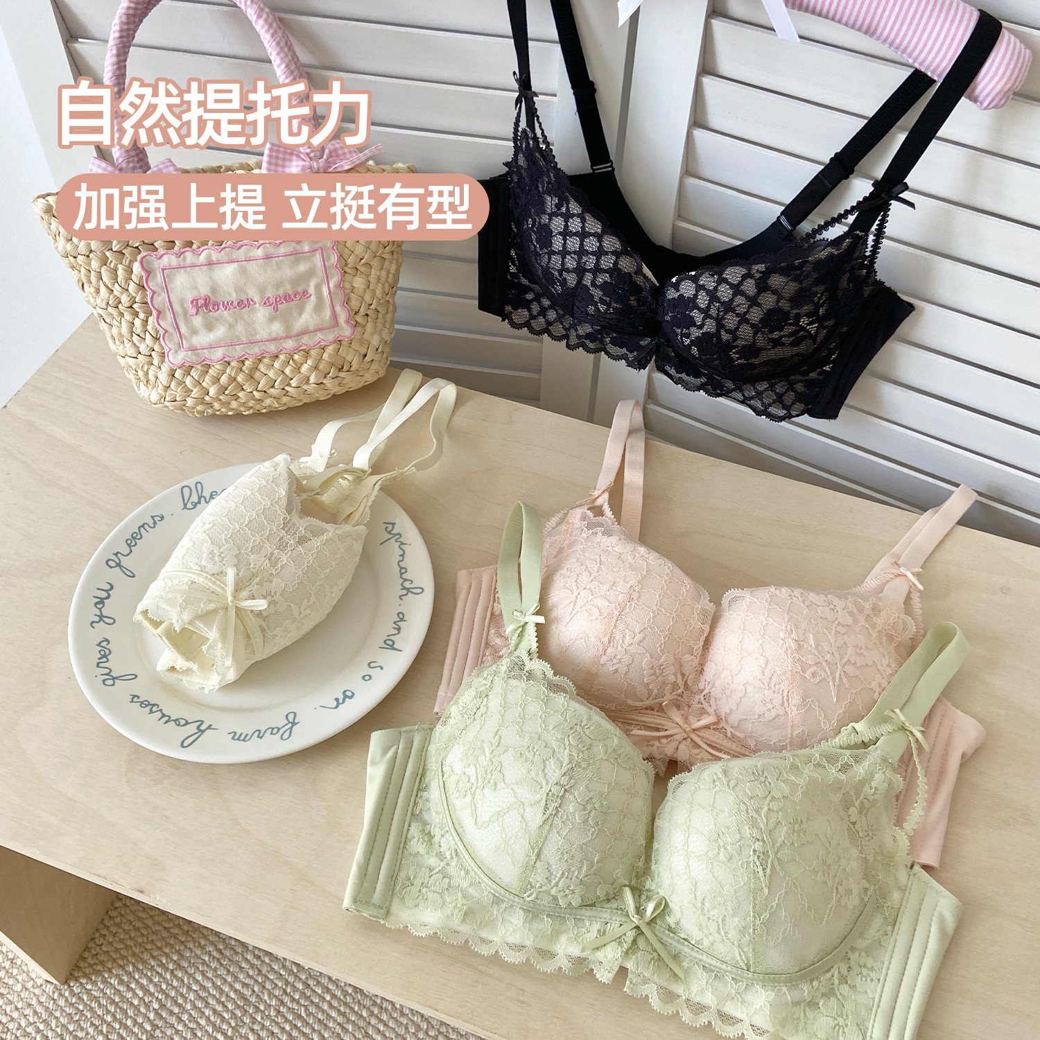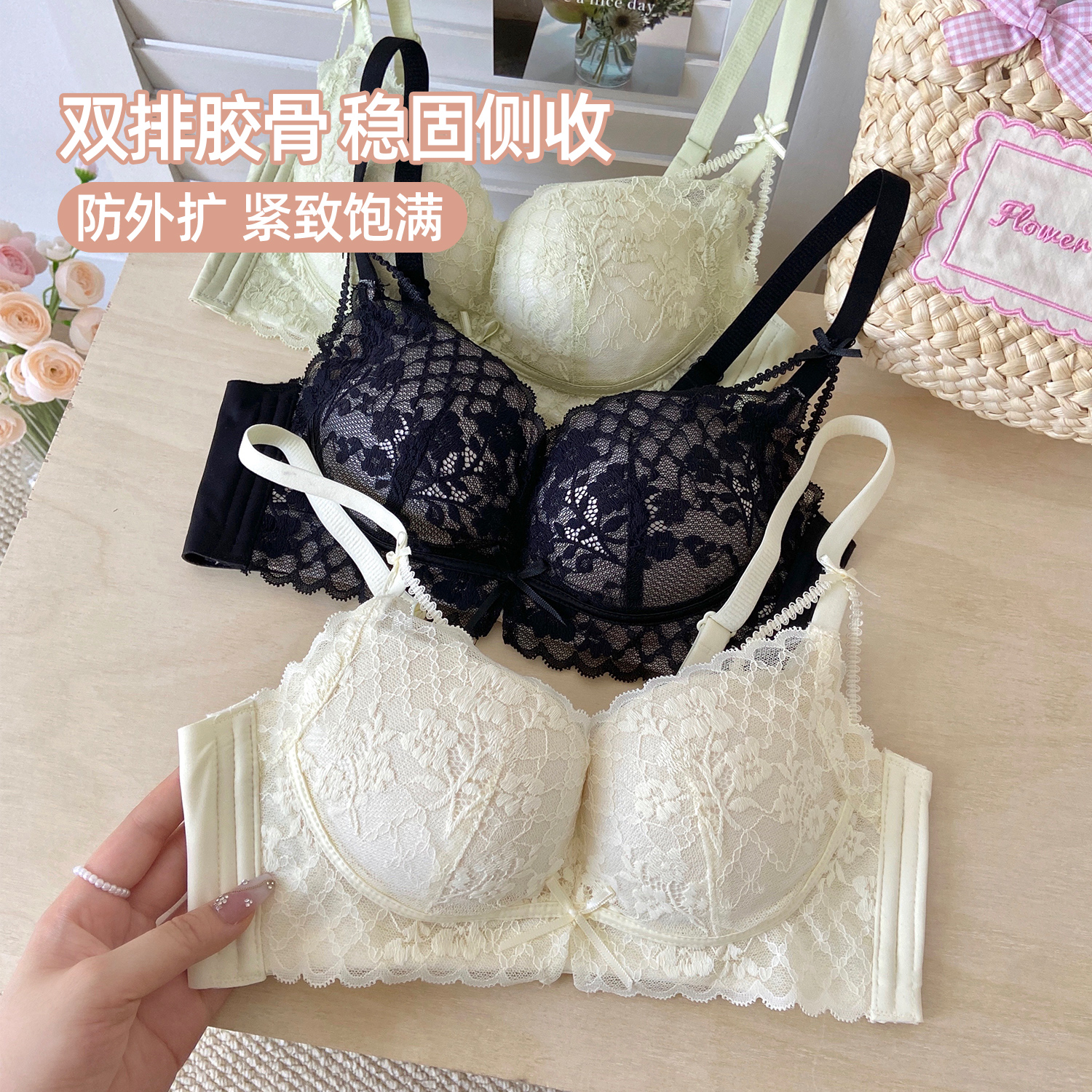 六只兔子内衣女蕾丝蚕丝莫代尔内杯聚拢显大侧收副乳甜美文胸罩