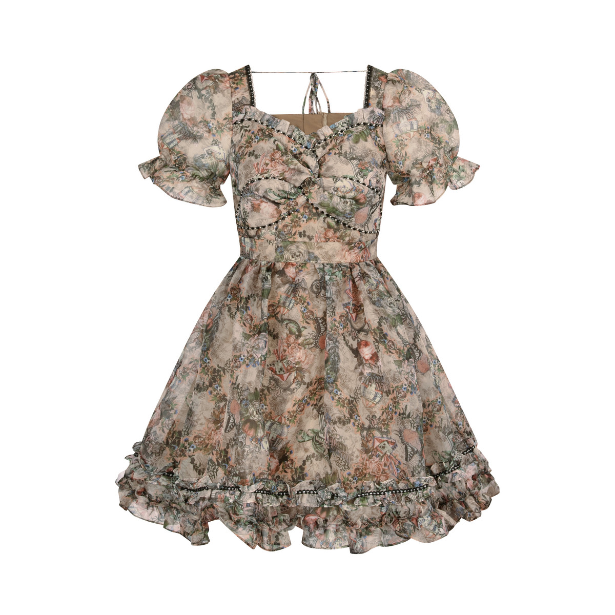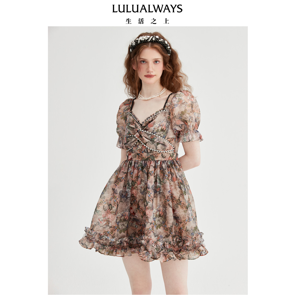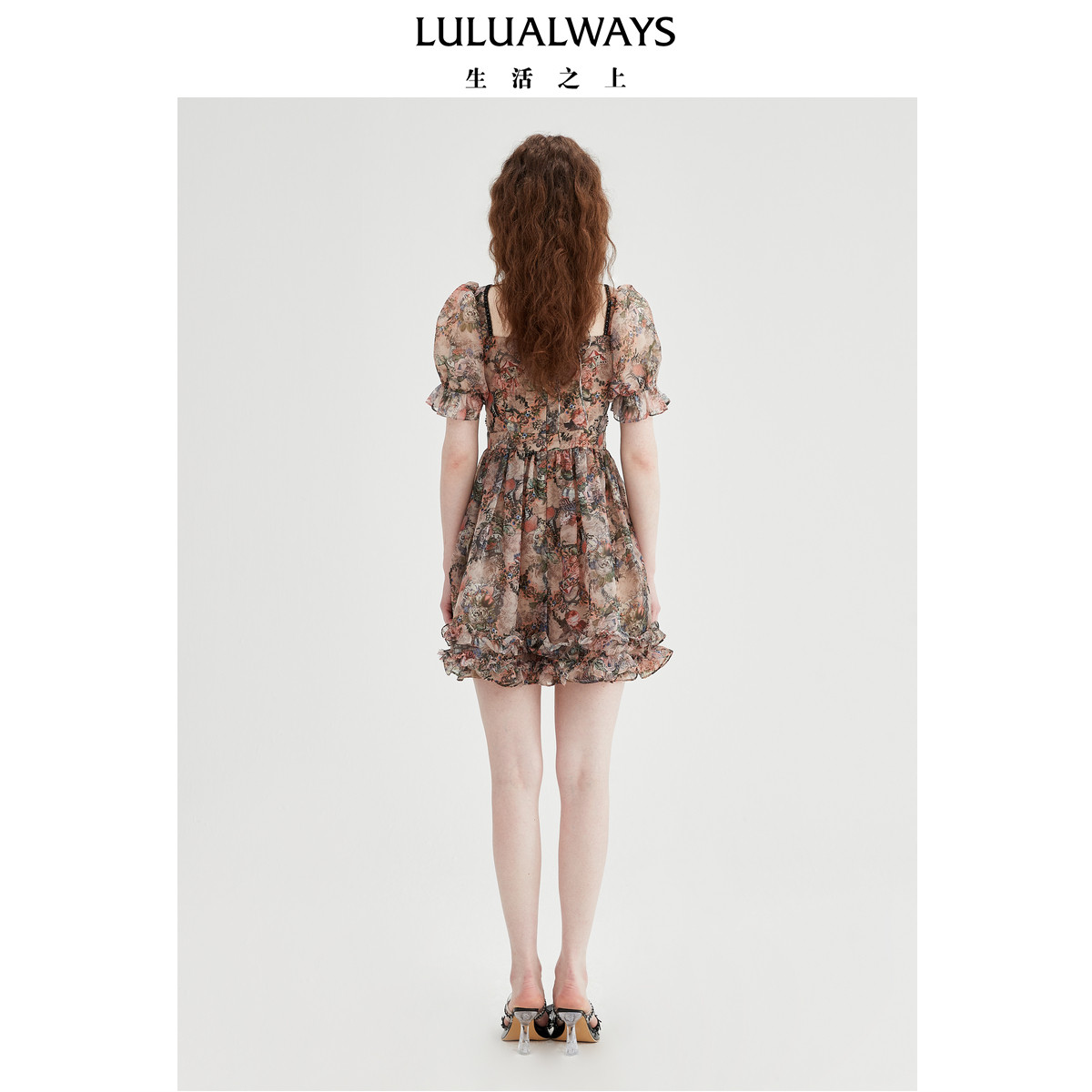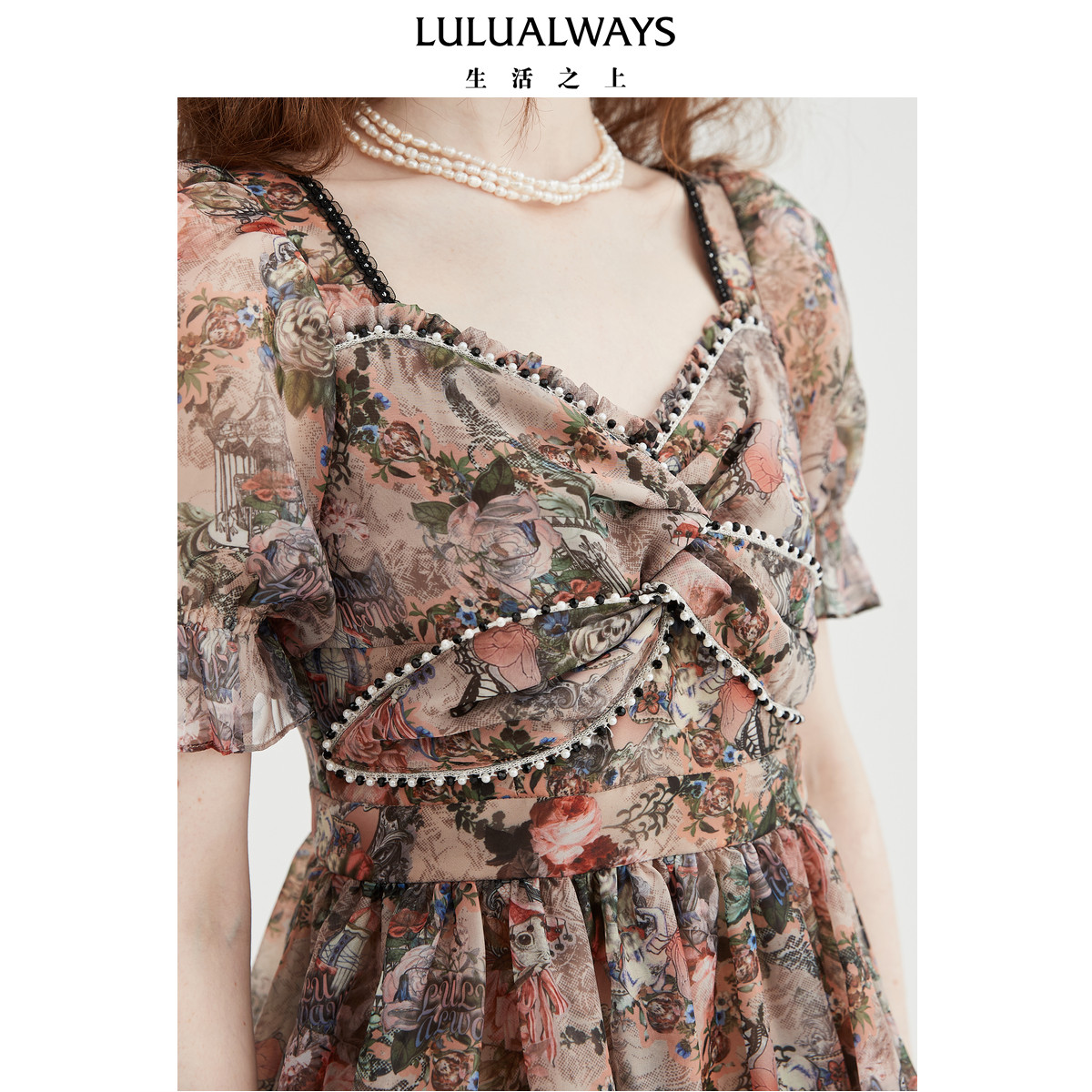 LULUALWAYS【商场同款】优雅气质欧根纱印花飘逸连衣裙