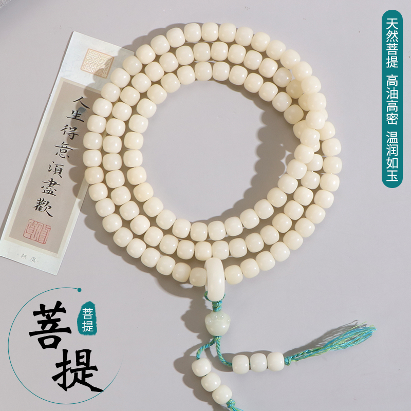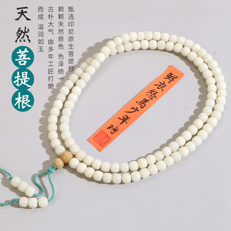 原生态天然白玉菩提根长串菩提籽文玩男女项链108颗老型小尺寸桶