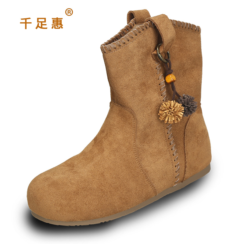 千足惠2025冬季新款大码女鞋41到43短靴女百搭平底加绒棉靴子潮40