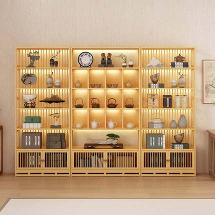 阁博架背条楠竹书柜储古物多宝室中式置物架茶背景展162示柜博古