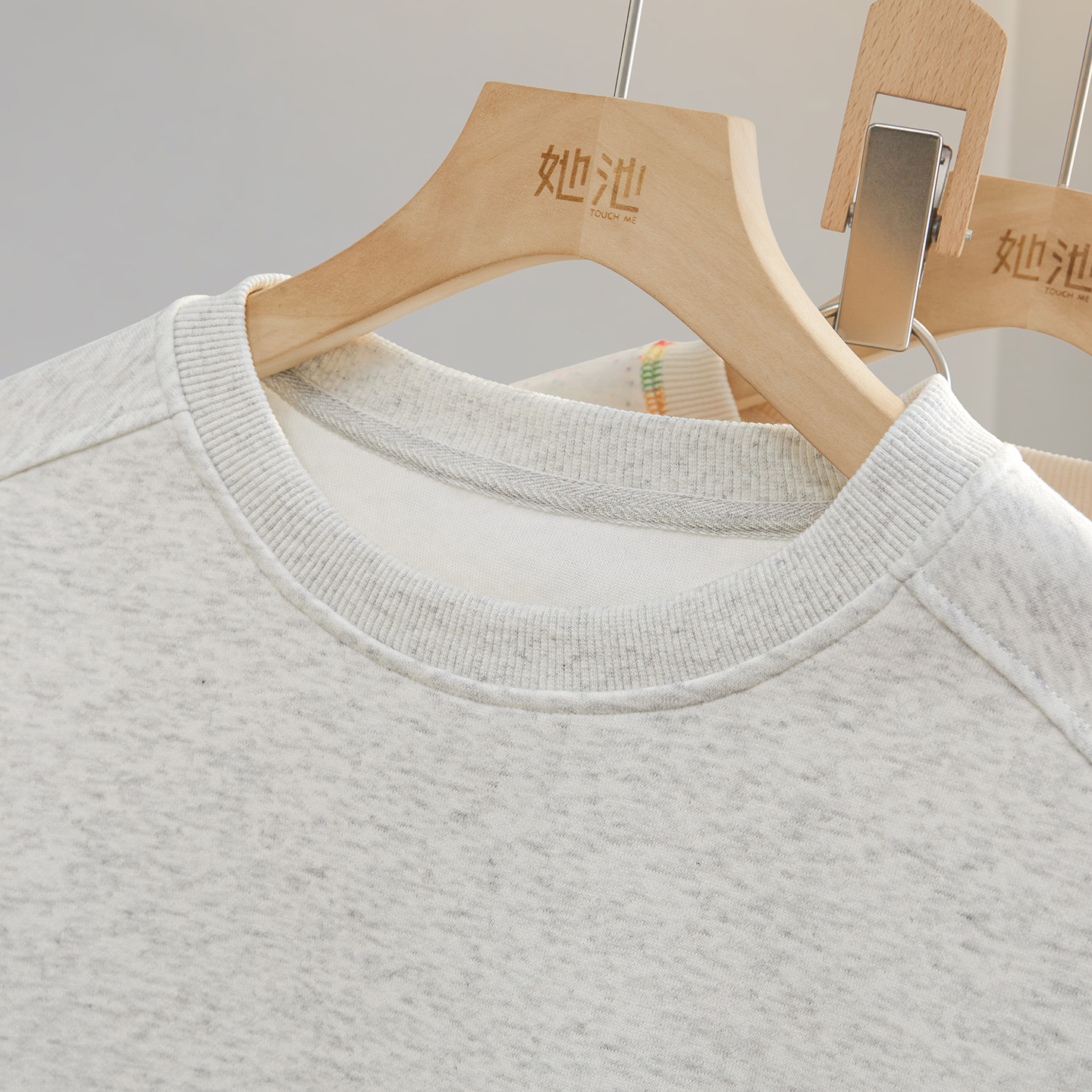 她池圆领卫衣2025秋装新款女装简约休闲风宽松款刺绣短款套头上衣