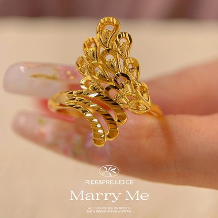 新款凤凰羽毛镀金仿真黄金戒指女大气指环结婚新娘三金沙金指环