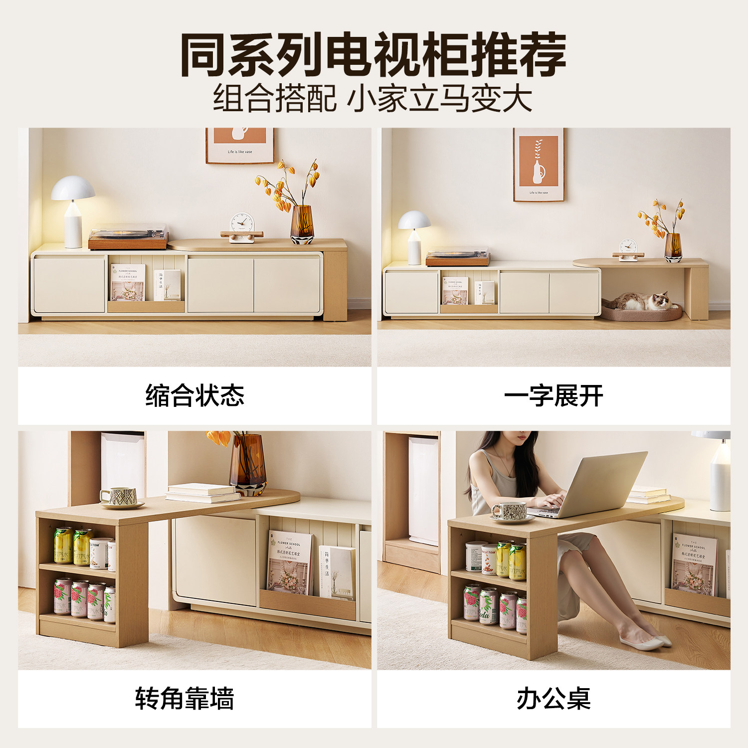全友家居奶油风小户型客厅高矮组合茶几家用电视柜收纳储物柜一体