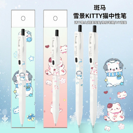 日本ZEBRA斑马迪士尼冬日雪花凯蒂猫限定款JJ29浓墨速干0.5mm黑色