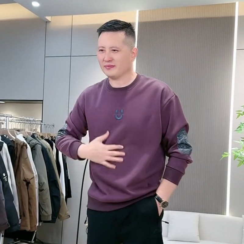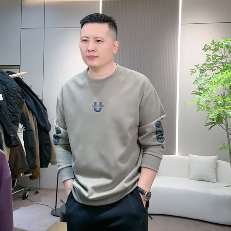 2024秋冬新款男士圆领休闲长袖宽松加绒加厚打底衫保暖套头卫衣男
