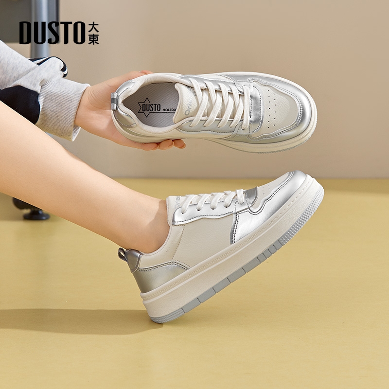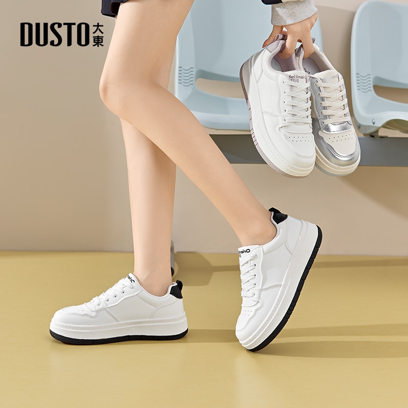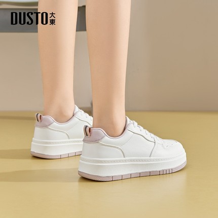 大东休闲板鞋女2025春秋新款女鞋厚底系带百搭小白鞋时尚运动鞋子