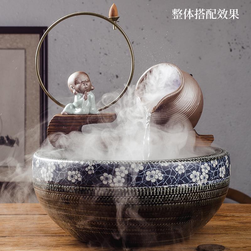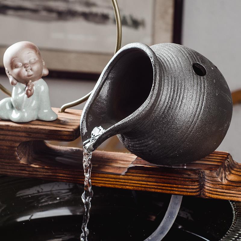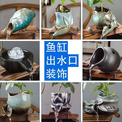 中式陶瓷鱼缸循环小号自制喷泉出水口装饰摆件流水器配件假山陶罐