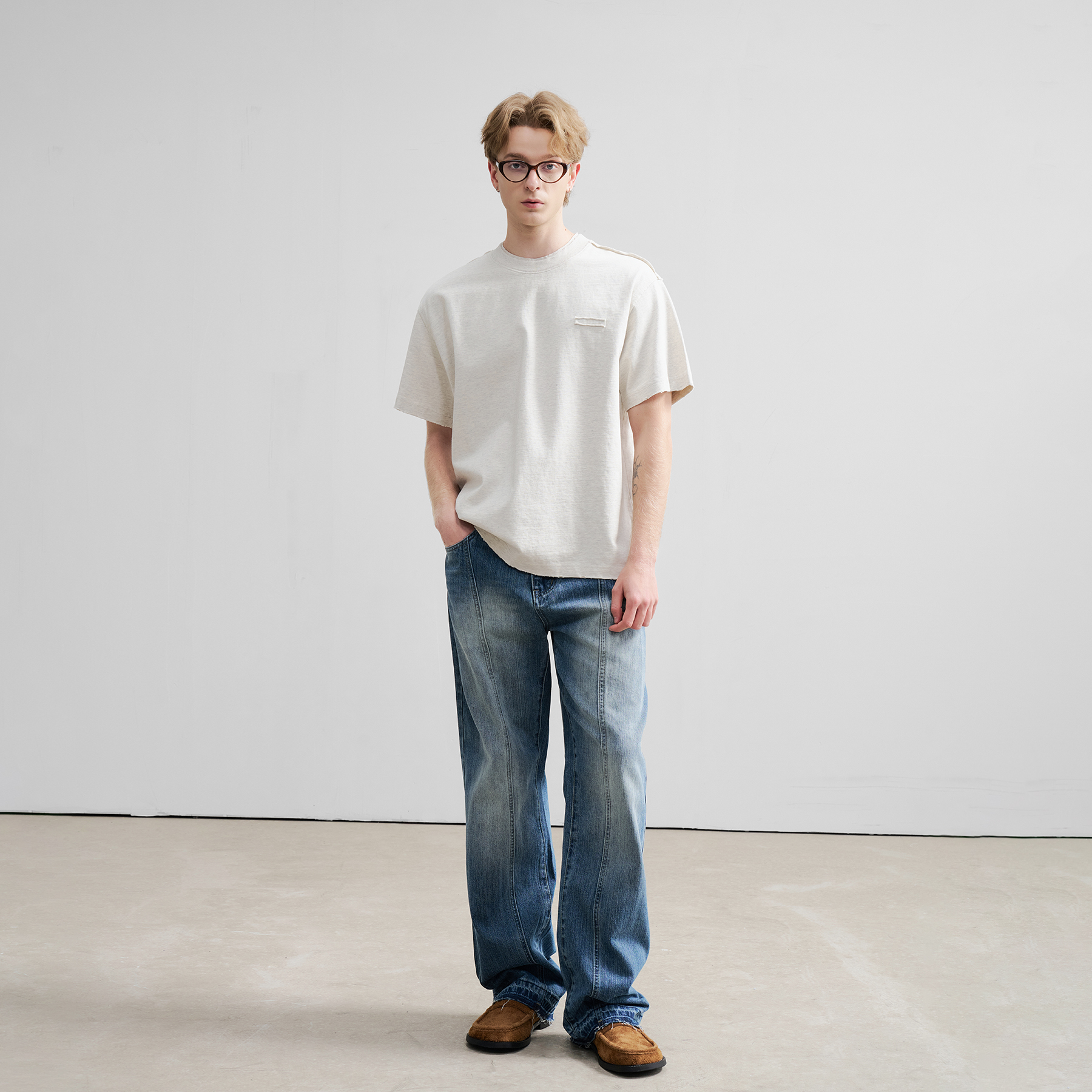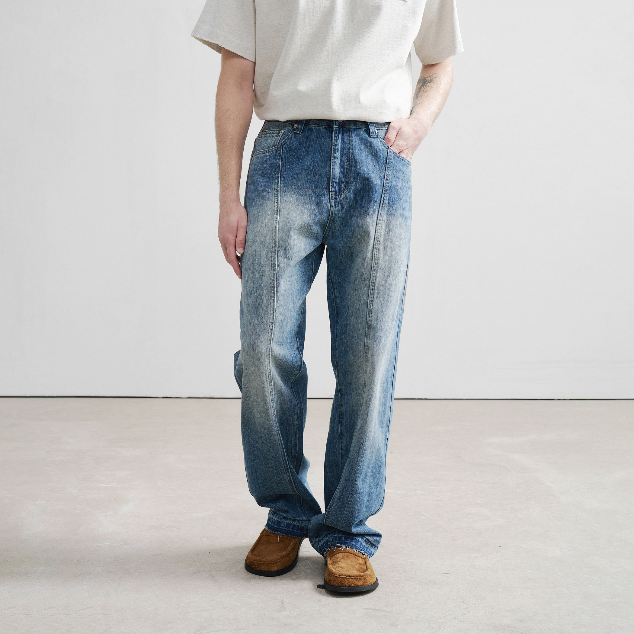 南乙NYHSUGOO喷马骝竹节棉牛仔裤男夏季宽松复古磨破休闲长裤3588