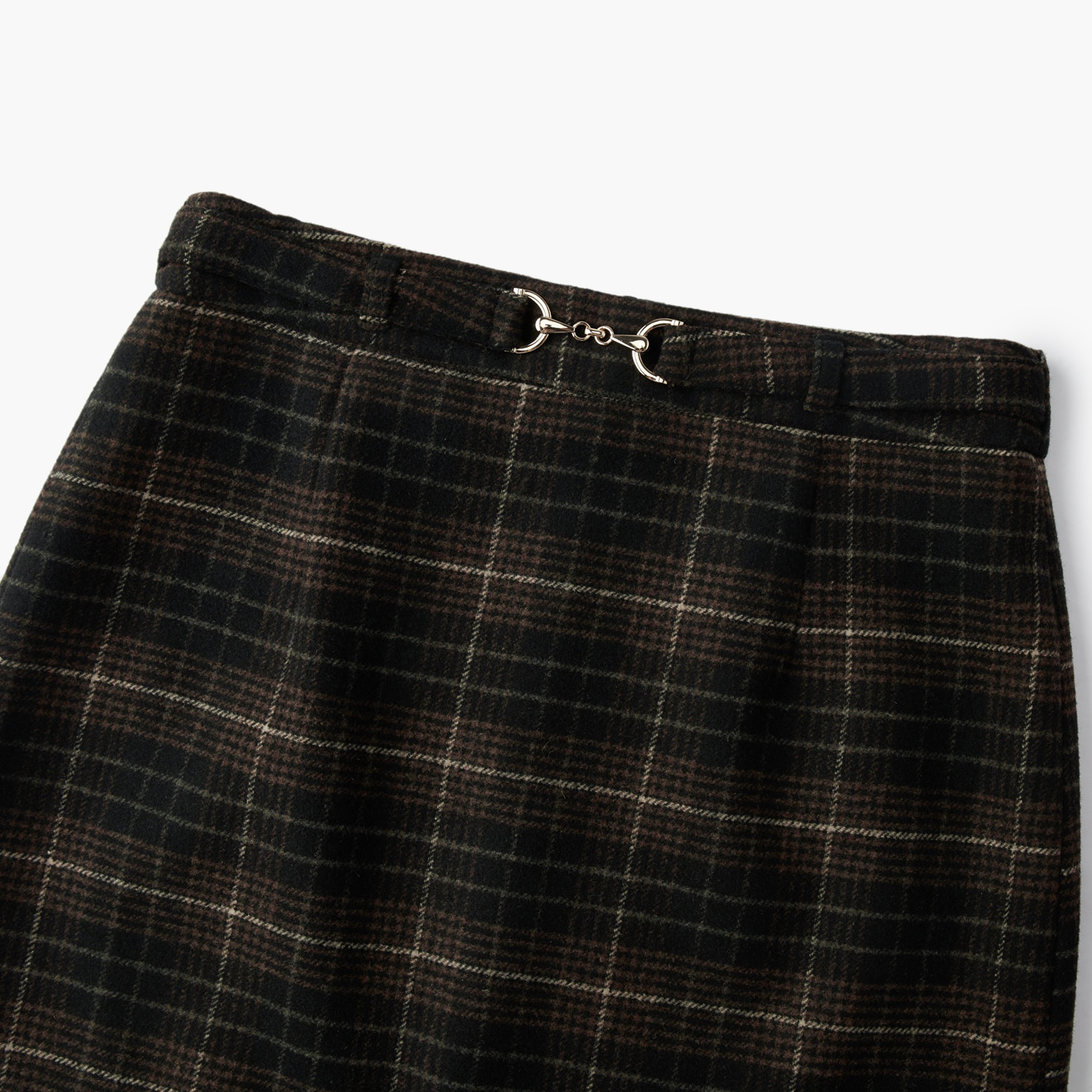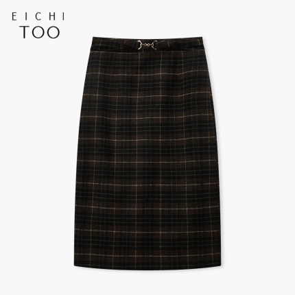 爱居兔中长款半身裙春秋新款时尚格纹直筒裙含羊毛单裙