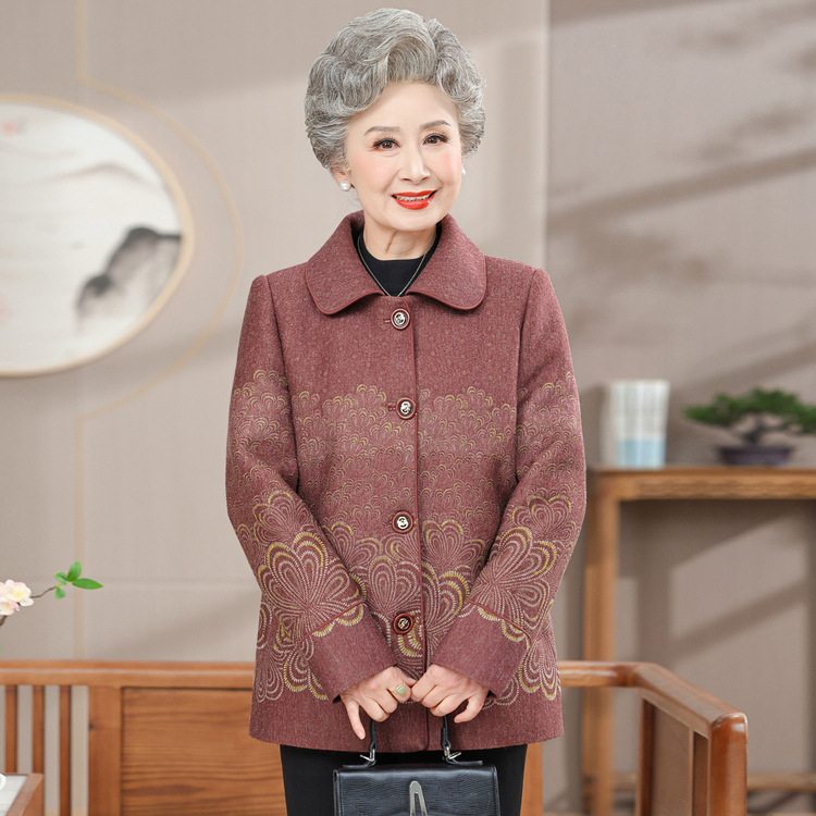 中老年人春装女外套奶奶装春秋开衫老太太褂子妈妈翻领大码上