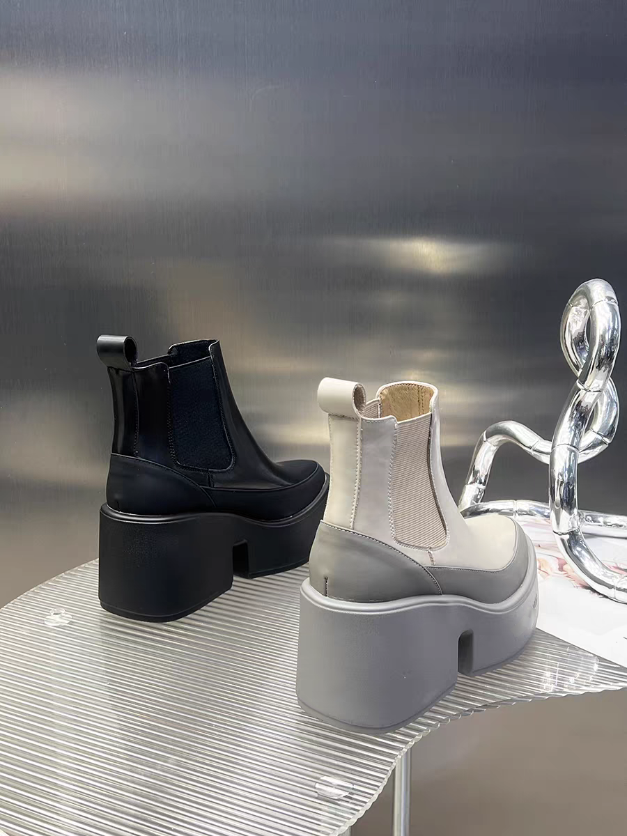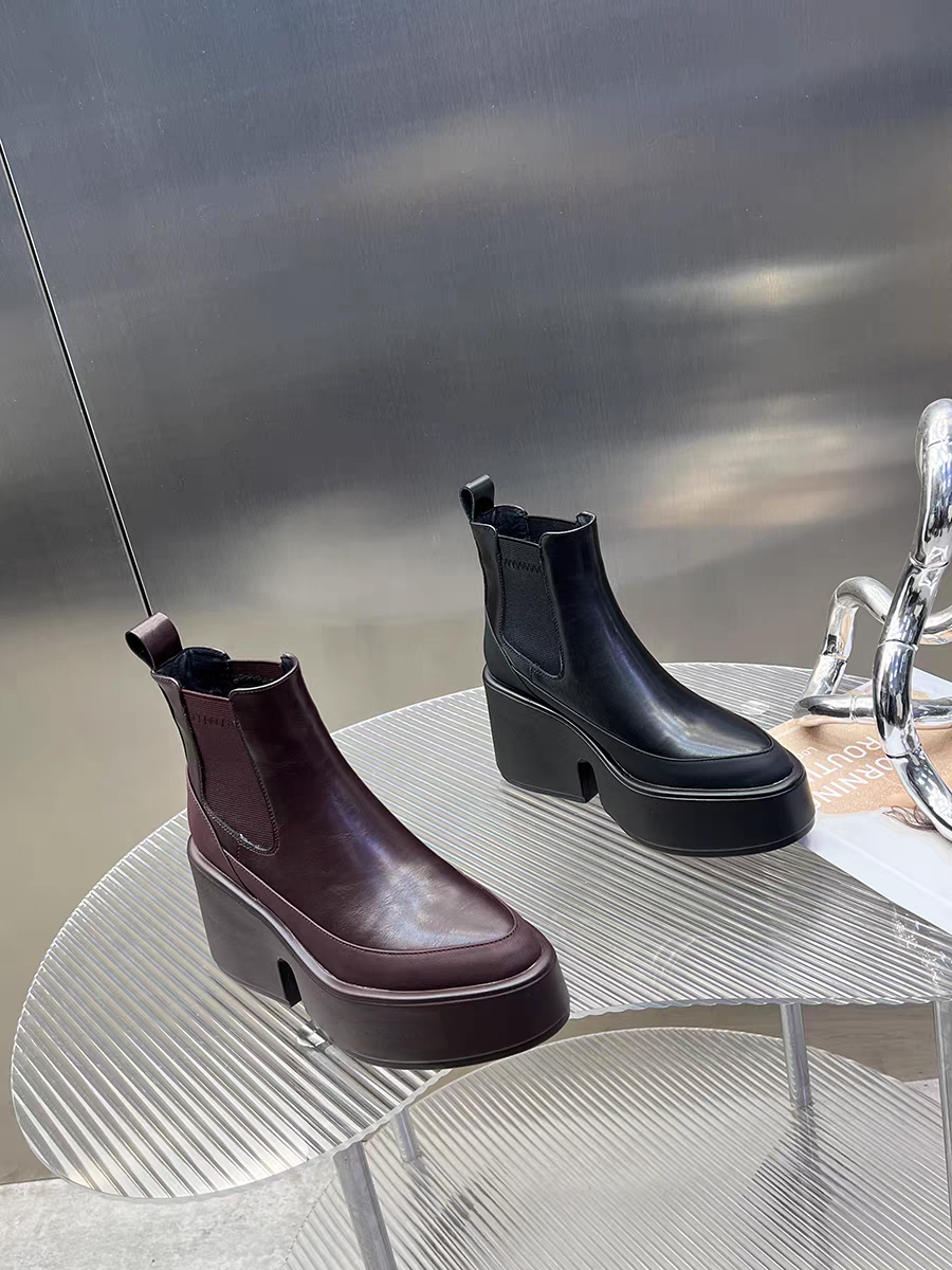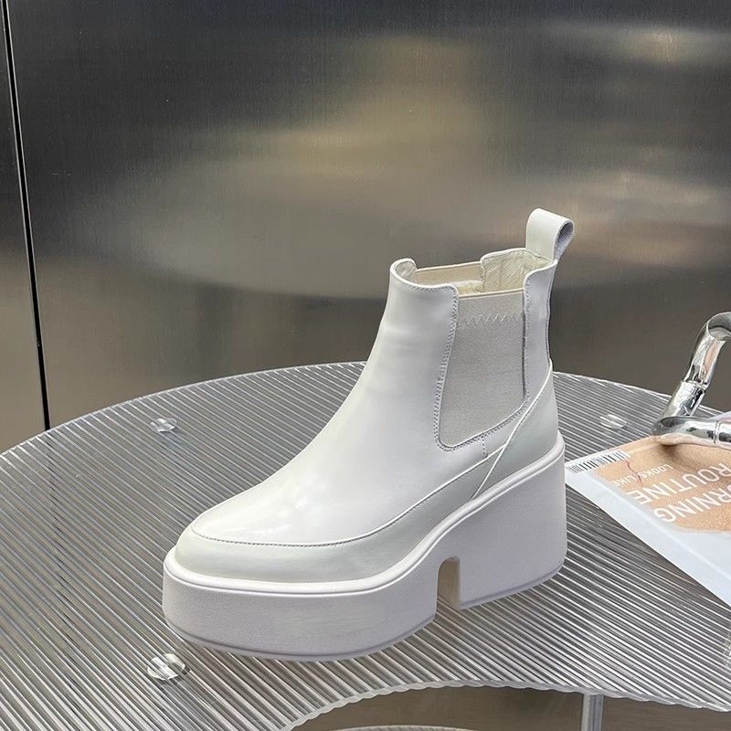 尖头切尔西短靴女厚底英伦风秋冬新款马丁靴女软底增高显瘦烟筒靴