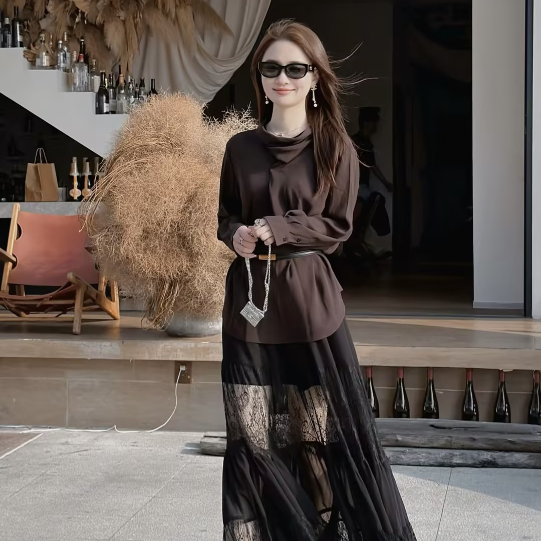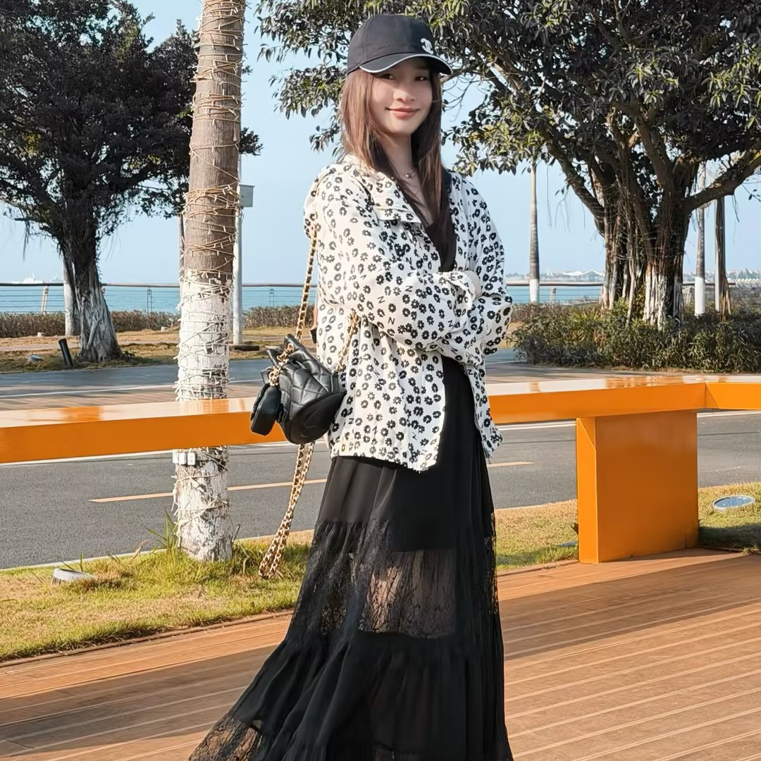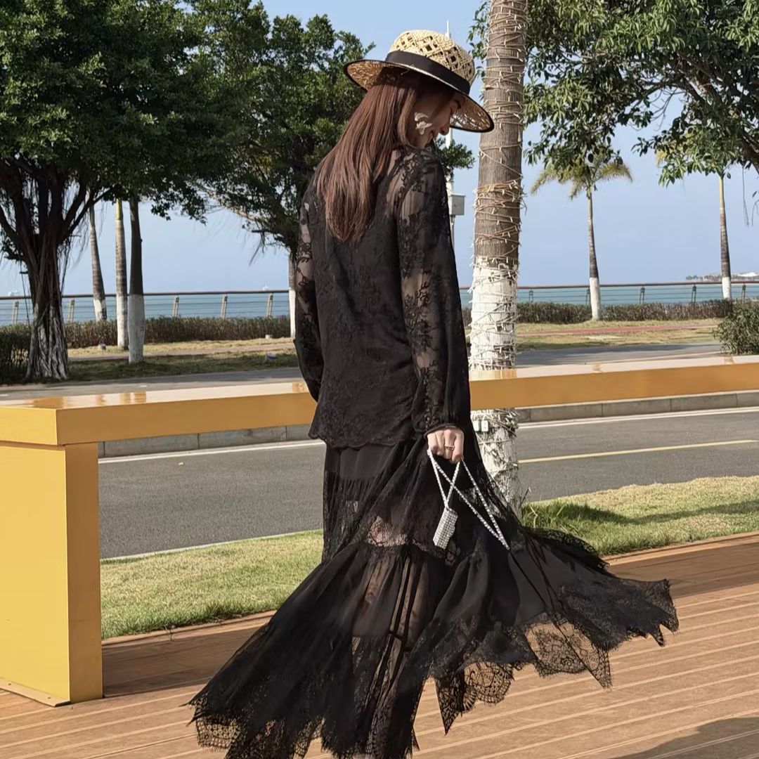 邱莹莹 HELAAOMI ”要的就是露肤度“蕾丝镂空拼接层次感半身裙
