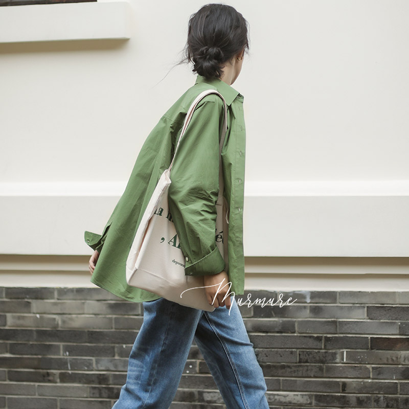 慵懒直筒翻领绿色高支棉廓型衬衫