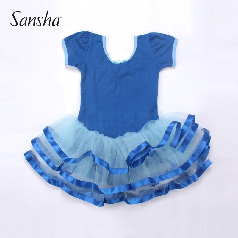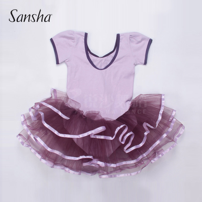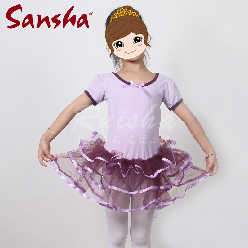 正品法国Sansha三沙儿童芭蕾舞裙练功服蓬蓬裙TUTU短袖考级舞蹈服