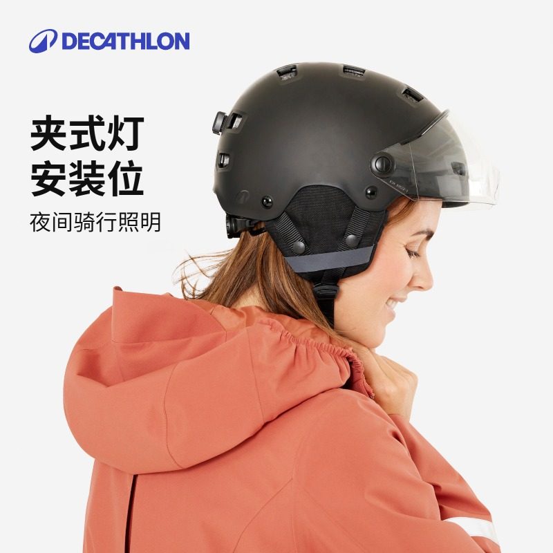 迪卡侬骑行头盔欧洲标准防雨面罩