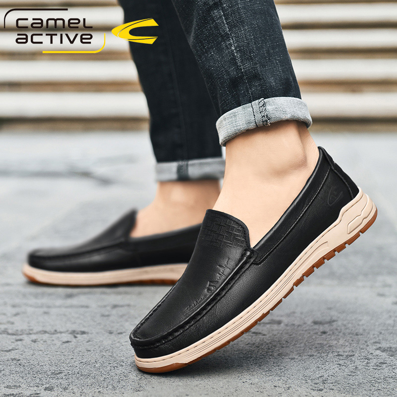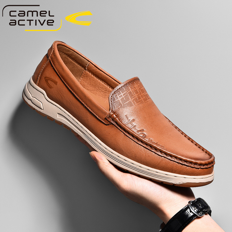 德国骆驼动感春季头层牛皮休闲皮鞋男真皮一脚蹬懒人鞋软底豆豆鞋