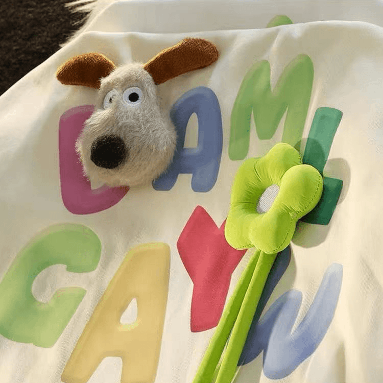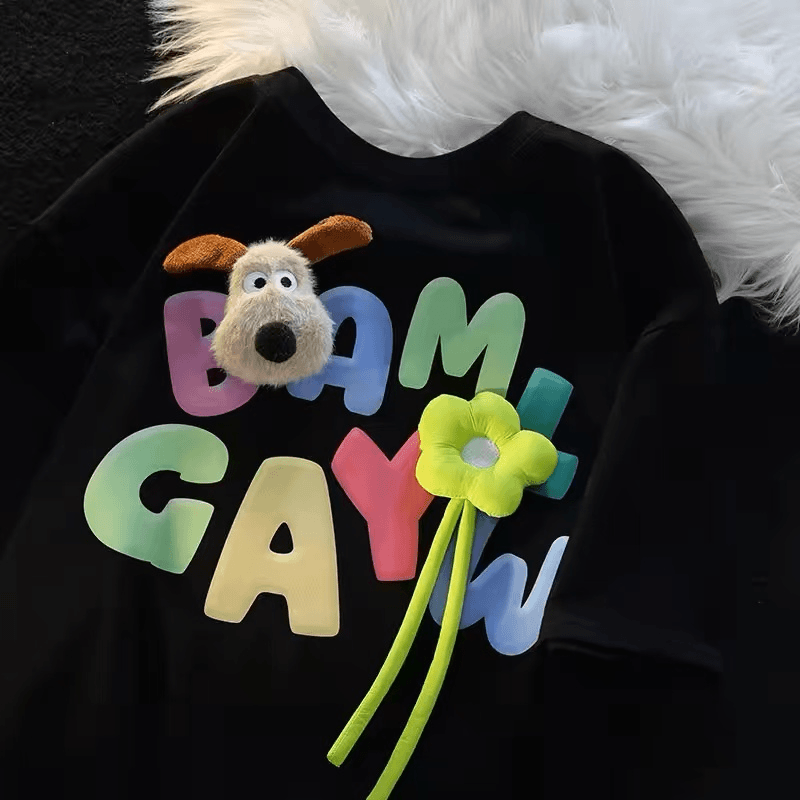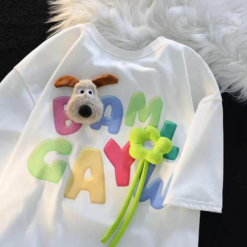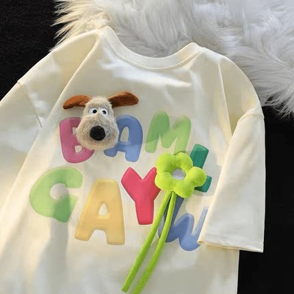 亲子装多巴胺韩系卡通儿童纯棉短袖t恤立体公仔男女童装炸街潮夏T