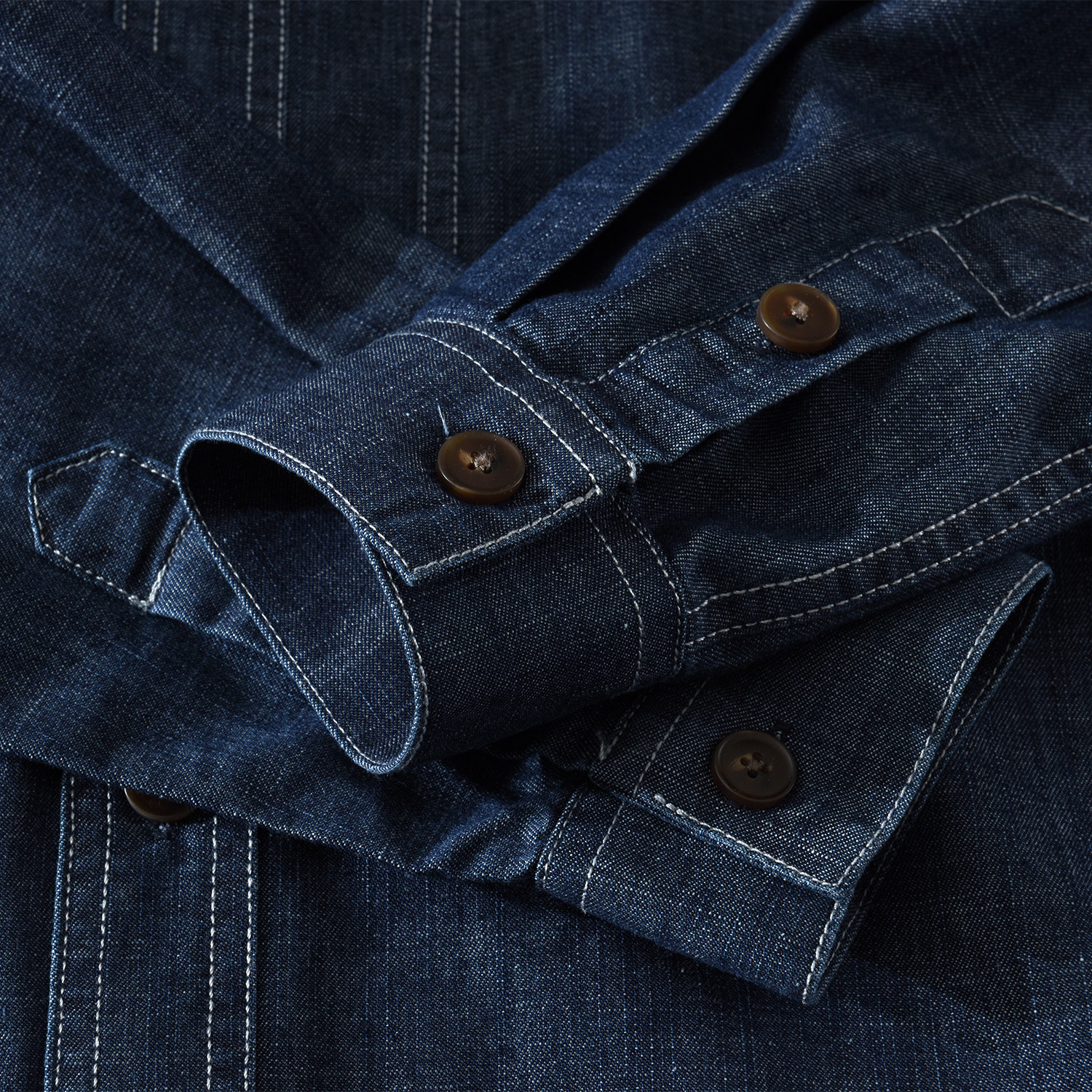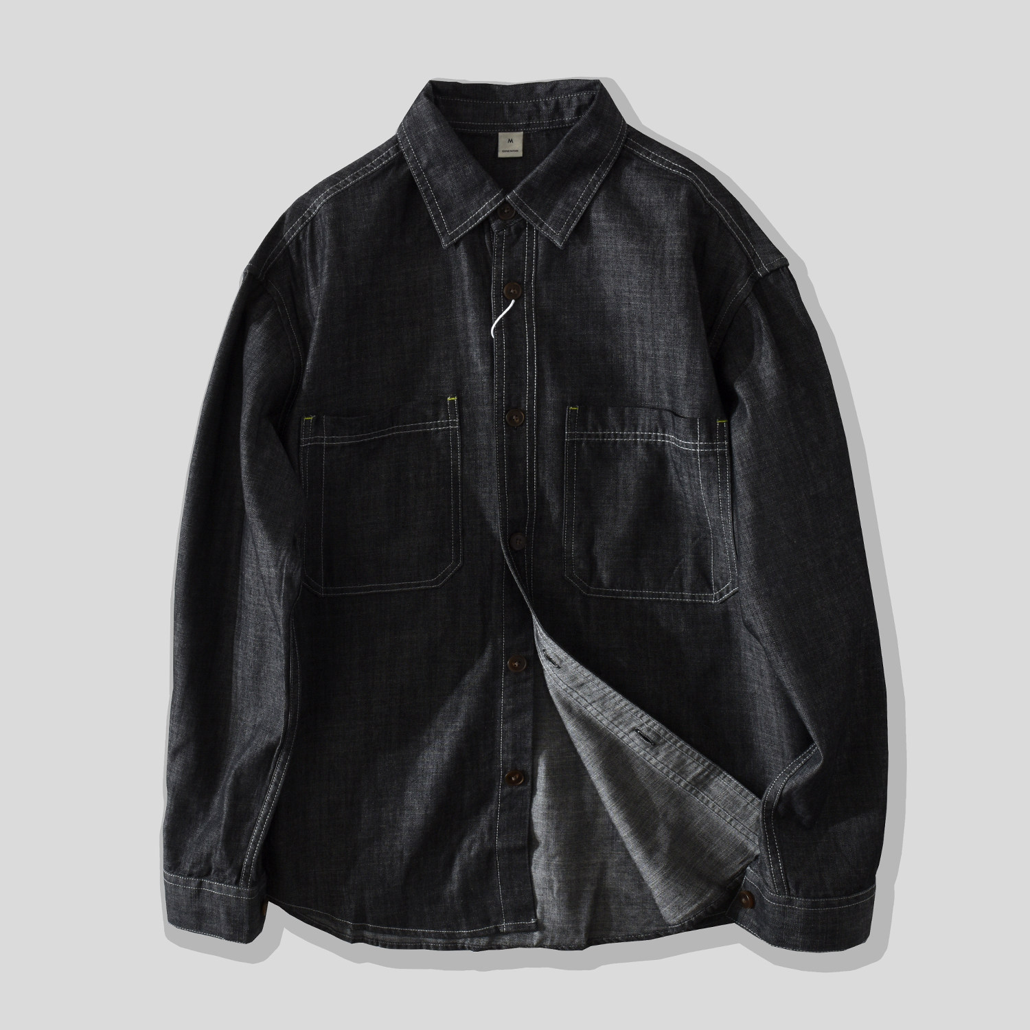 极麻水洗舒适休闲长袖牛仔衬衫男士日系基础百搭青年文艺宽松纯衣