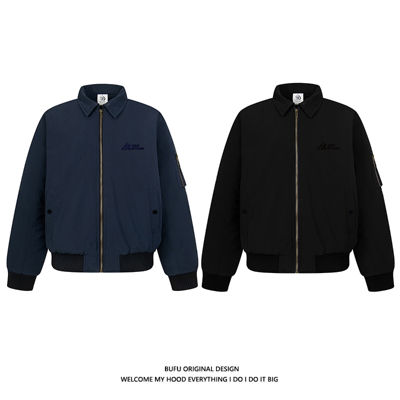 亿万少年BUFU美式vibe复古翻领飞行夹克保暖棉服bomber短款外套男