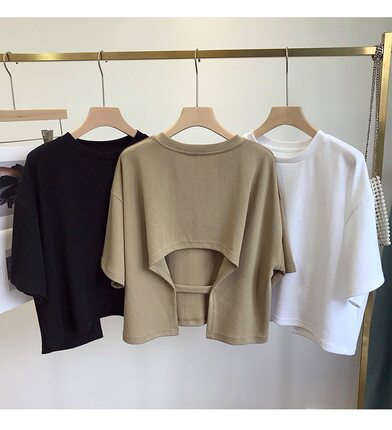 2026年新款夏季女装港味小众短款短袖上衣性感别致纯欲露背T恤ins
