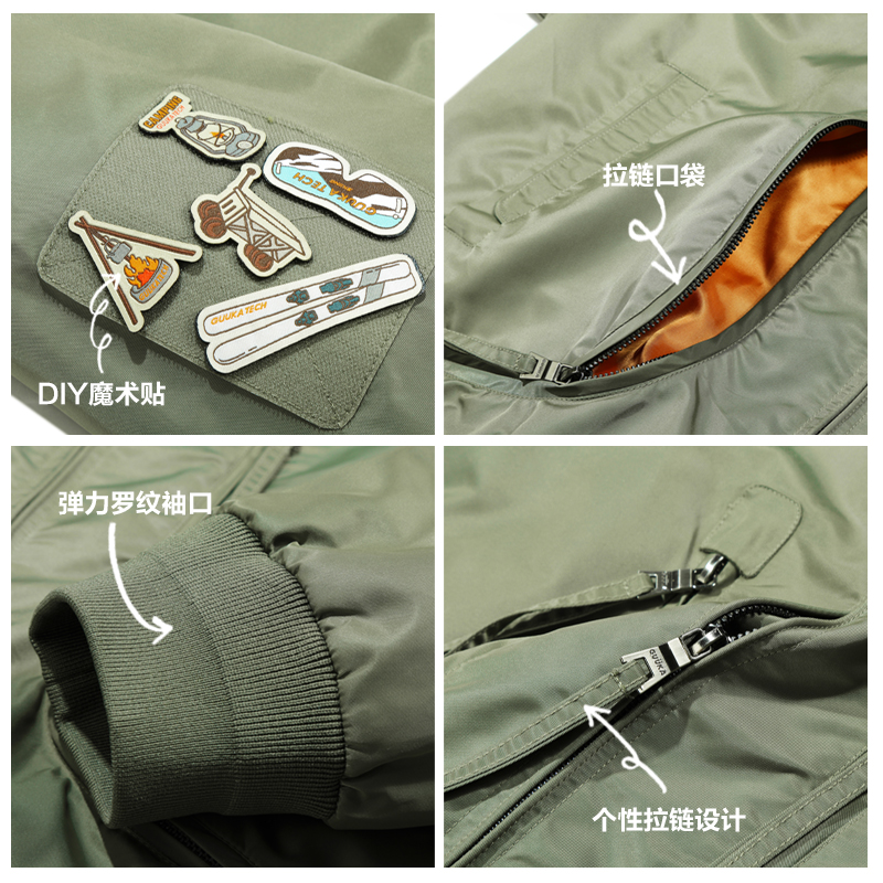 古由卡GuukaTech户外休闲飞行员夹克女 美式复古魔术贴大口袋外套