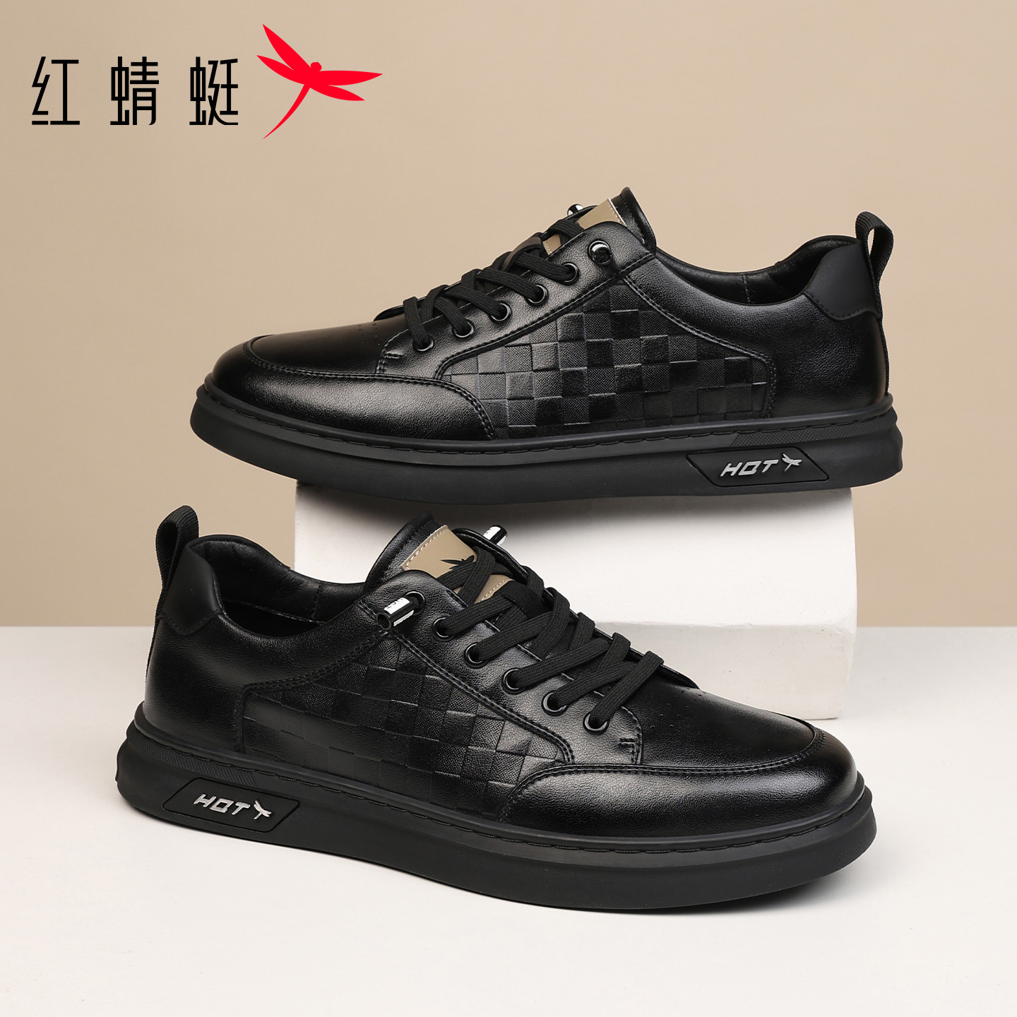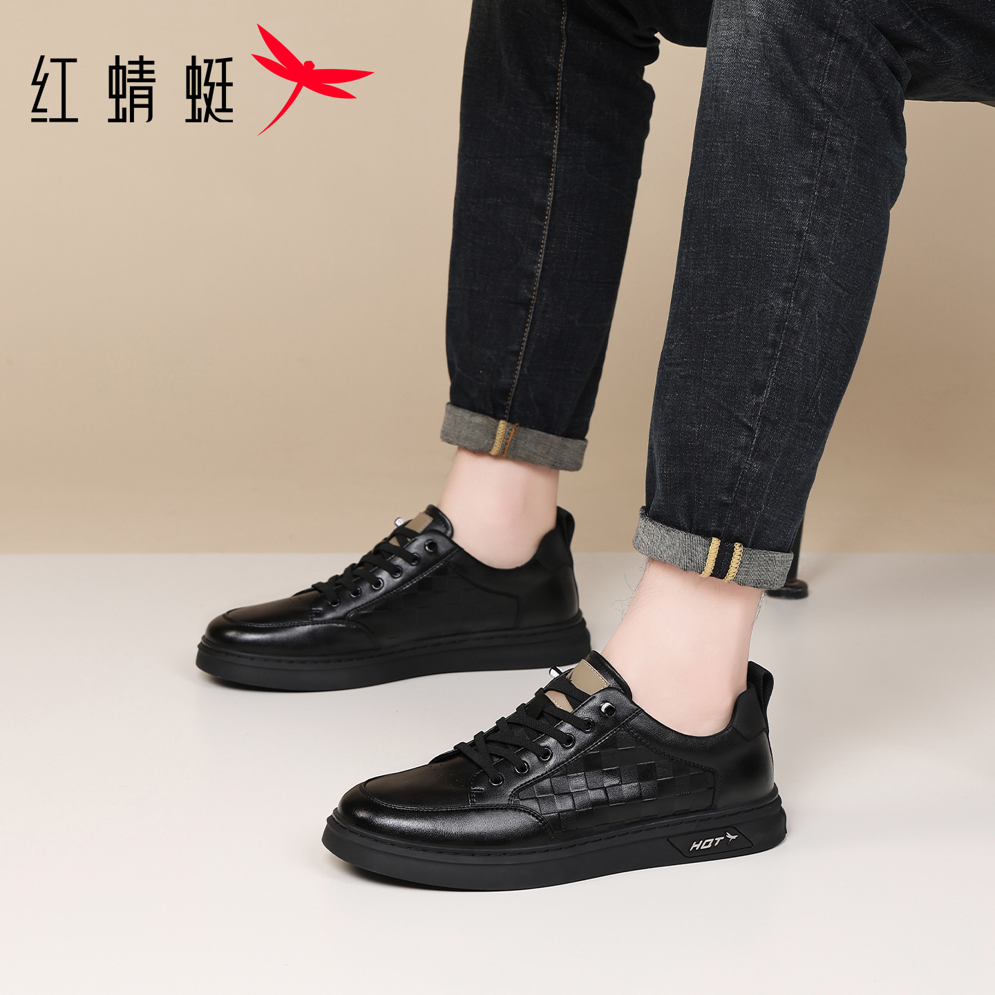 红蜻蜓男鞋秋季新款鞋子男士平底运动皮面休闲鞋板鞋男款单鞋皮鞋