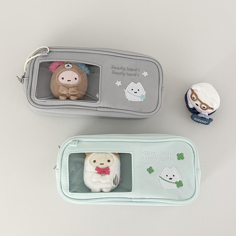 薄荷四叶草猫猫痛包笔袋高颜值多功能可视窗学生文具收纳袋收纳包