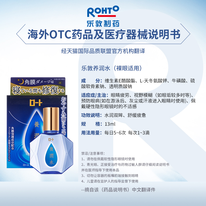日本ROHTO乐敦养润水眼药水13ml滋润眼部滴眼液夜间睡眠缓解疲劳