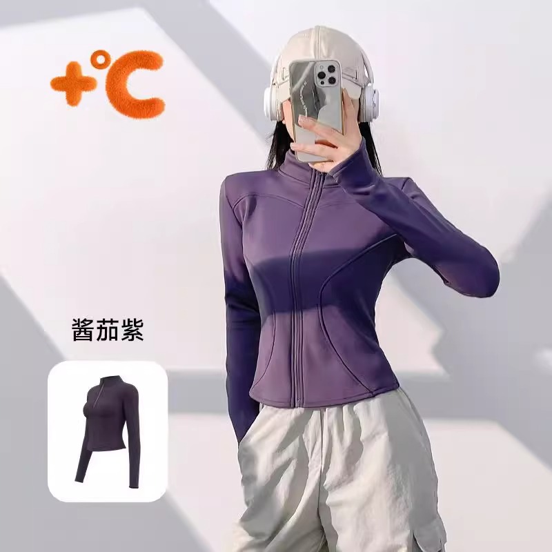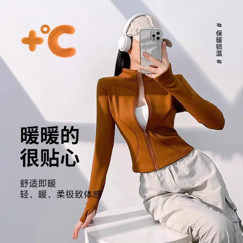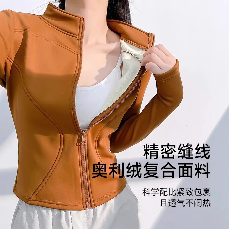 外穿瑜伽服冬季加绒瑜伽修身运动上衣健身衣内搭外套抓绒内胆卫衣