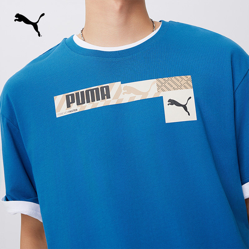 运动T恤男子休闲印花简约纯棉舒适基础短袖 673441puma官方奥莱