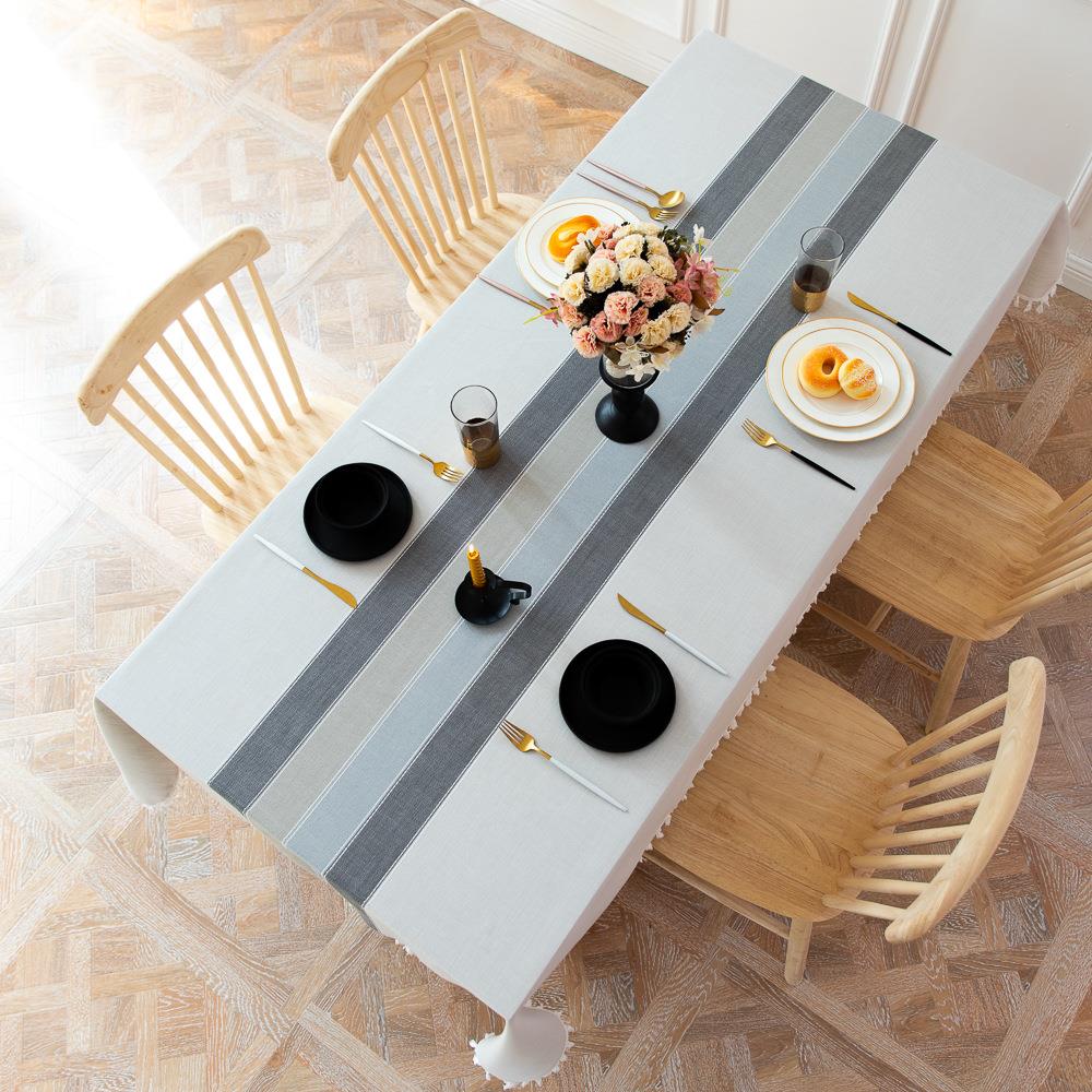 现代简约布艺条纹桌布聚会派对拼接流苏棉麻防尘餐桌垫装饰桌套定