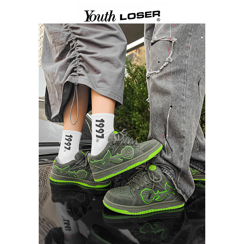 Youthloser夜光玫瑰板鞋男潮原创小众设计国潮情侣运动休闲面包鞋