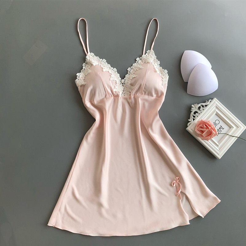 睡衣女士蕾丝吊带睡裙女夏带胸垫性感可爱冰丝情调衣人火辣家居服