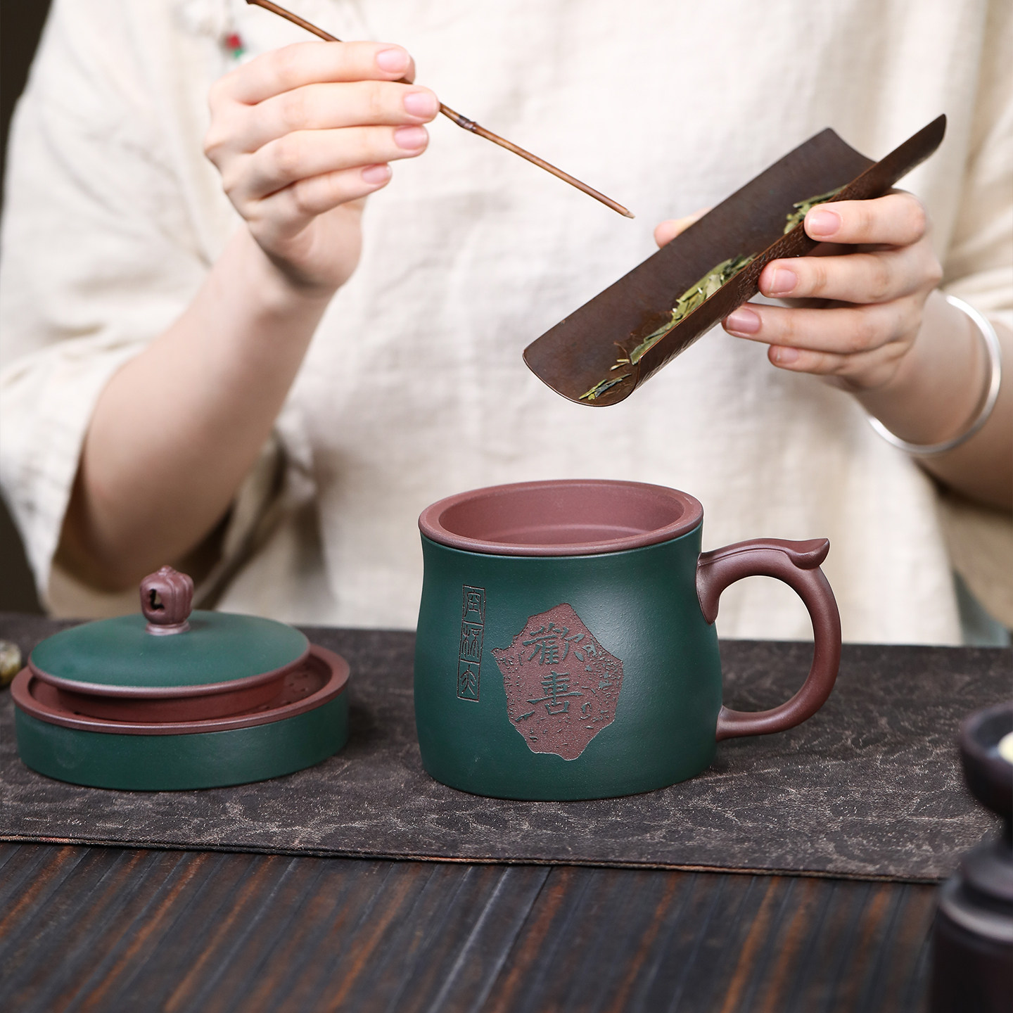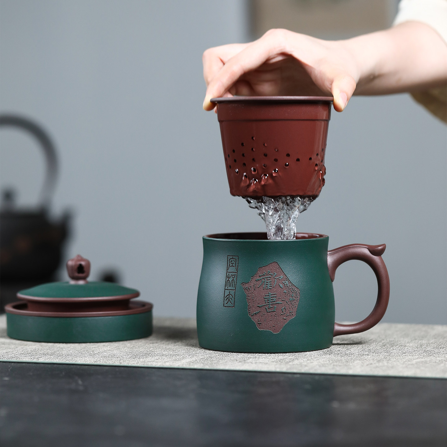 宜兴紫砂杯原矿双色粉浆盖杯家用办公室泡茶杯带内胆过滤茶具家用